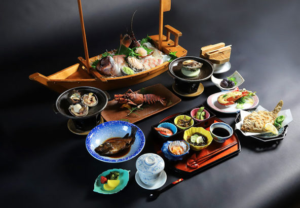 舟盛には伊勢海老や鯛のお造り、うにの釜飯など魚介類が盛りだくさんの豪華コース。 【お品書き】 ...